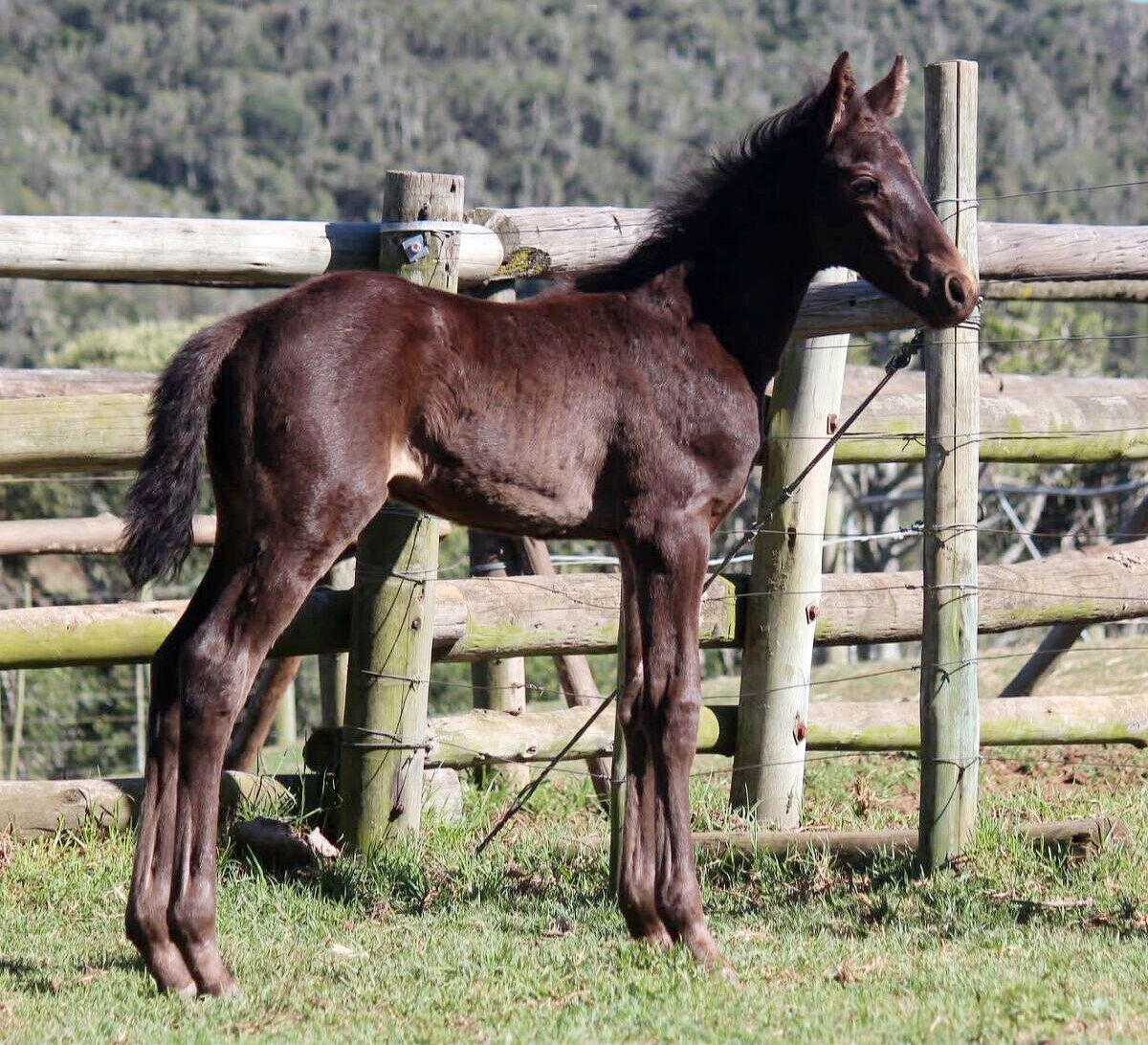 His dam is a big roamy thoroughbred mare bred in the purple for jumping, who’s by Fortwood and out of a Western Winter mare.