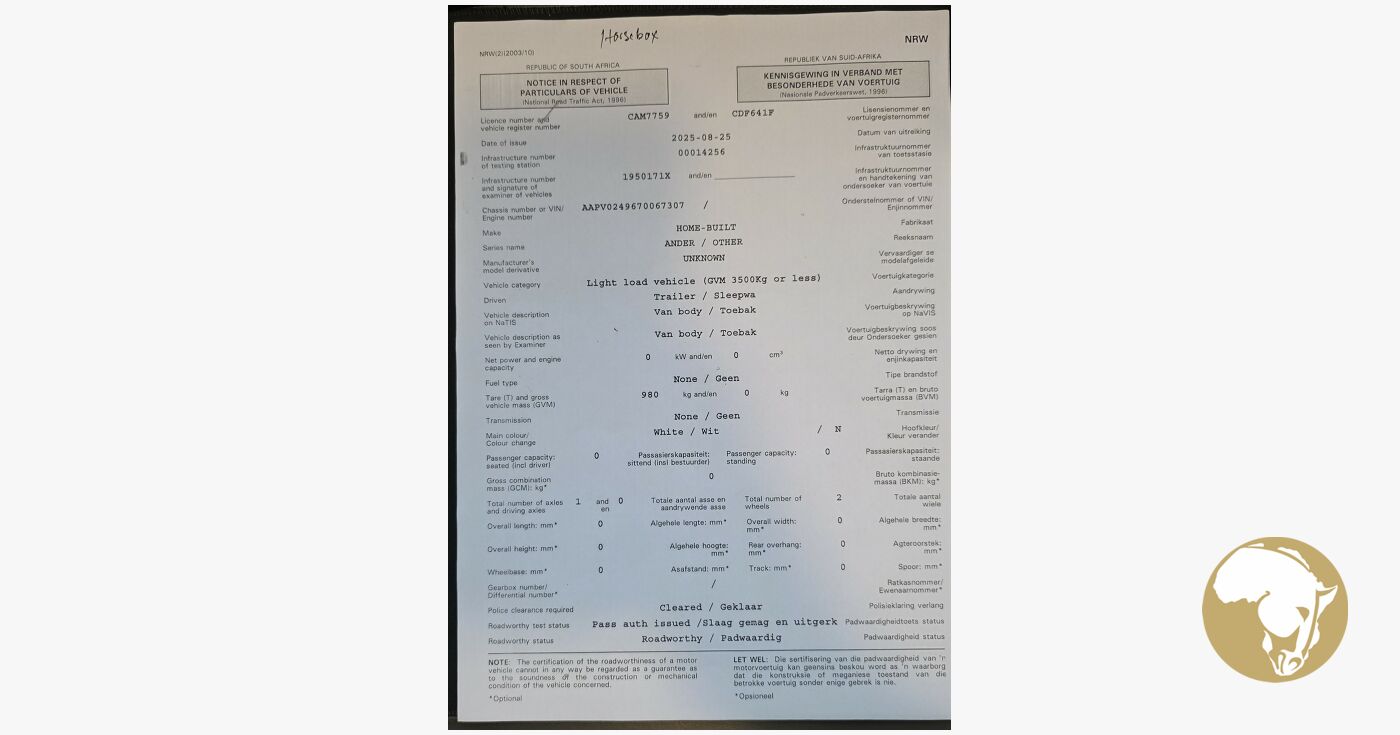 Home-built horse box for sale. Trailer is roadworthy and papers and licence disc are up to date. Big enough for a 17hh draft horse.